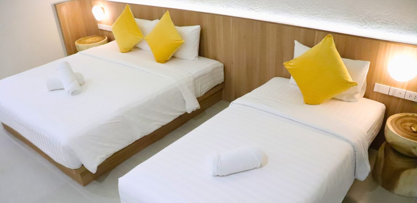 Premier Triple Room (Garden View) is our new modern style room at the three-storey building, located on the left wing side of the resort, surrounded by tropical greenery and trees. All rooms use key cards and access to higher floors by elevator.
